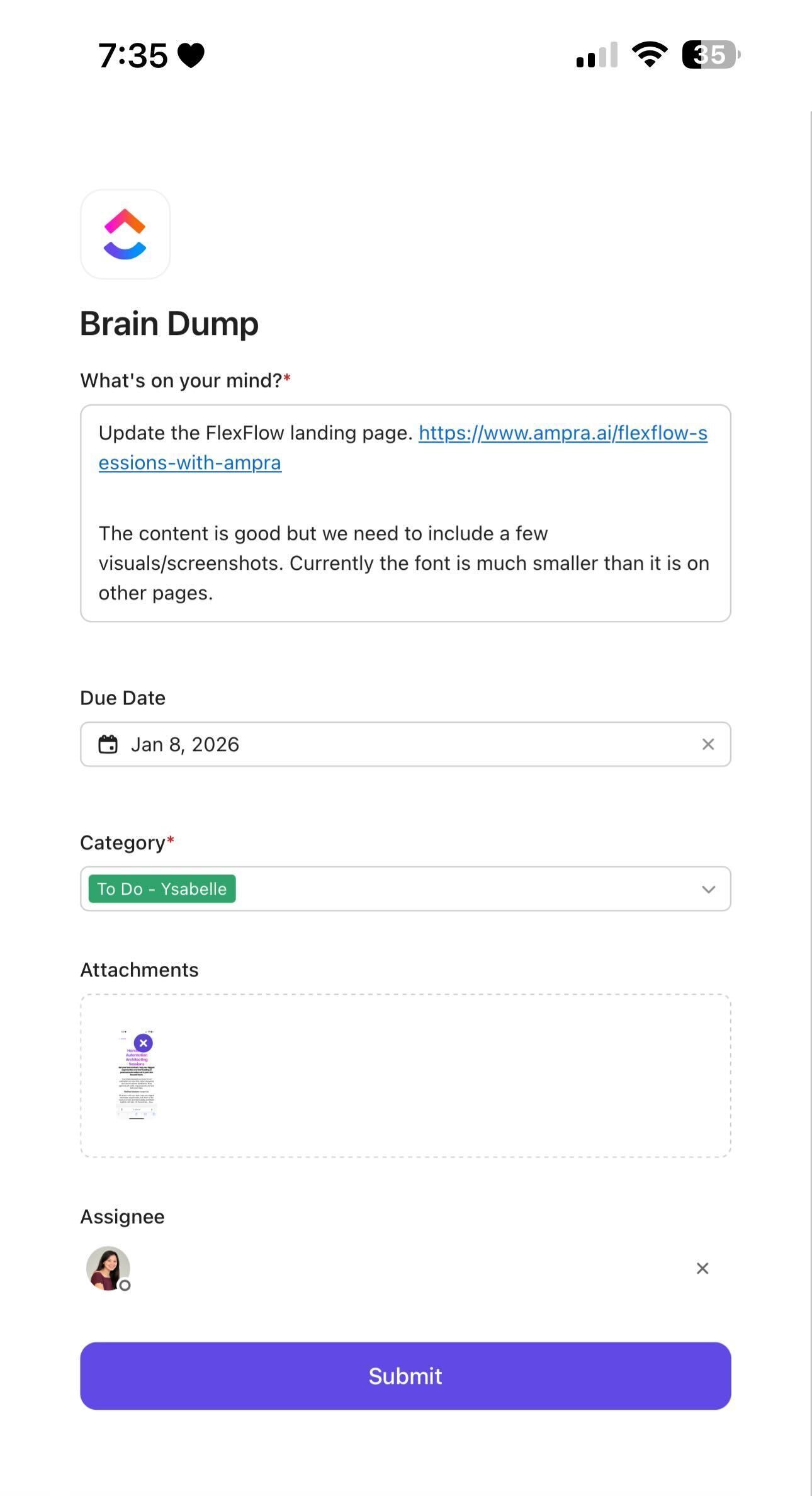 I added it as a shortcut on my iPhone home screen. Now when an idea hits, I open the form, type it in, and hit submit.